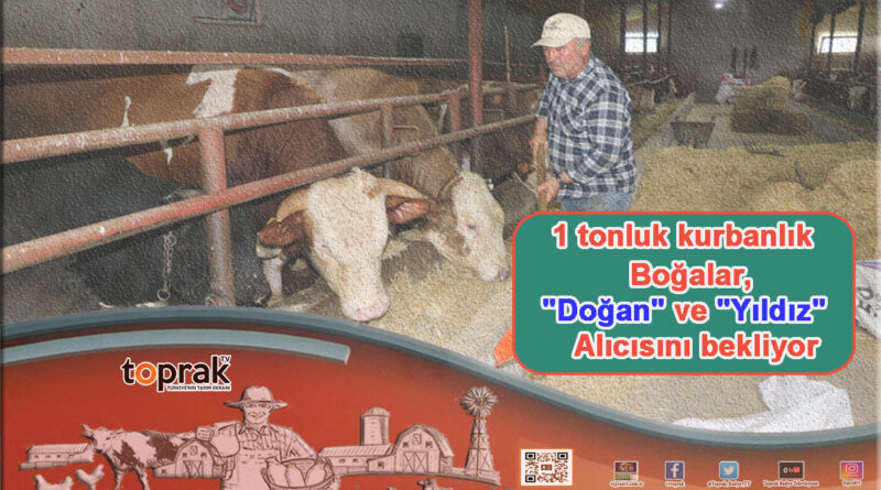 1 tonluk kurbanlık boğalar “Doğan” ve “Yıldız” alıcısını bekliyor.