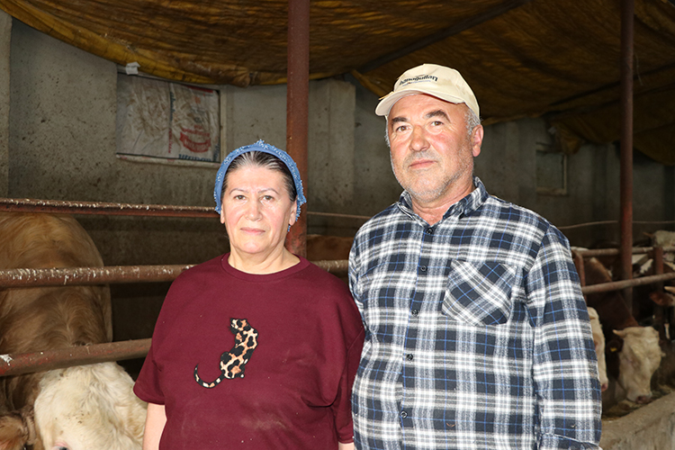 Merkeze bağlı Tayip köyünde 20 yıldır besicilikle uğraşan Kahriman çifti, Kurban Bayramı öncesi yetiştirdikleri büyükbaş hayvanları, bulundukları yerde satmaya çalışıyor.