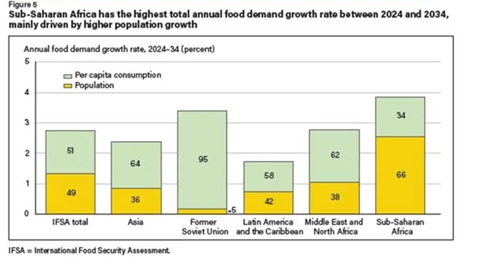 Afrika Sahra Altı Ülkeleri hariç diğer tüm bölgelerde, gıda tüketim artışı gelir artışı ve daha fazla gıda tüketimi-talebi şeklinde olacak.
