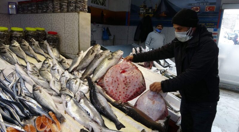 Özdemir, “Tezgâhımızda bulunan levrek 6 kilogram ağırlığında. Kilosu 150 TL. Yani fiyatı 900 TL. Trabzon açıklarında avlandı. Kalkan da Trabzon açıklarında avlandı. Kalkanın kilosu 175 TL. Vatandaşa pahalı geliyor, çoğu sorup geçiyor. Yüzde 1-2 kişi alıp yiyor, yüzde 98’i sorup geçiyor” diye konuştu.