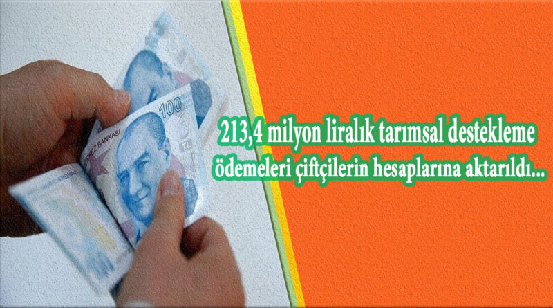 213,4 milyon liralık tarımsal destekleme ödemeleri çiftçilerin hesaplarına aktarıldı…