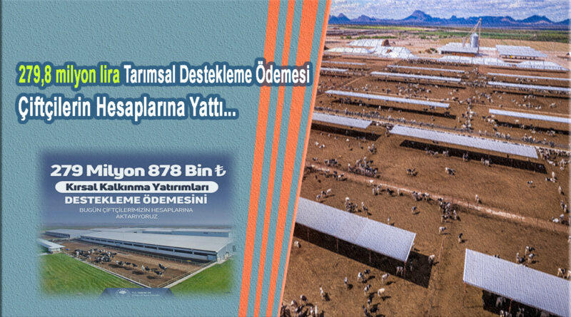 Tarım ve Orman Bakanlığı’nın sosyal medya hesabı X’ten yapılan açıklamada, “279 milyon 878 bin lira kırsal kalkınma yatırımlarını destekleme ödemesinin çiftçilerin hesaplarına aktarıldığı bildirildi.”