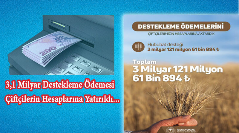 3,1 Milyar Destekleme Ödemesi Çiftçilerin Hesaplarına Yatırıldı…