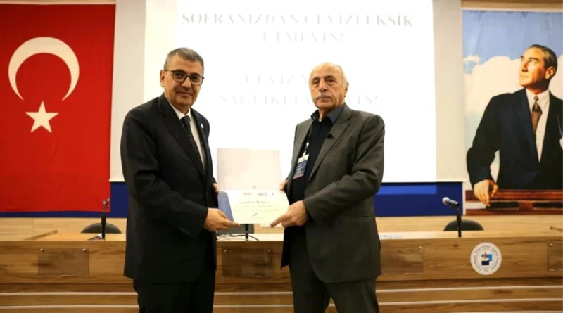Sunumunun sonun katılım ve katkılarından dolayı Prof. Dr. Seyit Mehmet Şen’e teşekkür belgesini Rektör Prof. Dr. Ahmet Kutluhan tarafından takdim edildi.