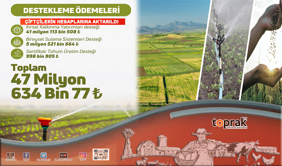 Bakanlık, ödemelerin tüm çiftçilere hayırlı ve bereketli olmasını diledi.