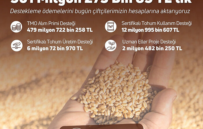 Paylaşımda yer alan infografiğe göre, Toprak Mahsulleri Ofisi alım prim desteği kapsamında 479 milyon 722 bin 258 lira, sertifikalı tohum üretim desteği kapsamında 6 milyon 72 bin 970 lira, sertifikalı tohum kullanım desteği kapsamında 12 milyon 995 bin 607 lira ve uzman eller projesi desteği kapsamında 2 milyon 482 bin 250 lira ödeme yapılacak.