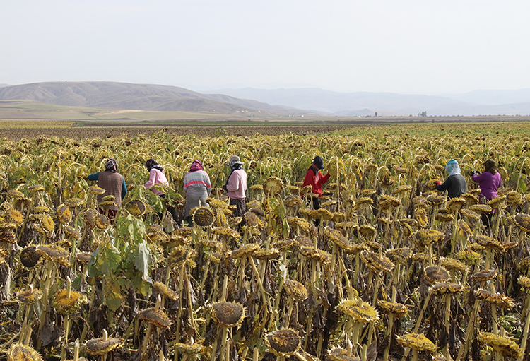 Çevresi yüksek dağlarla çevrili Ağrı Ovası’nın geniş tarlalarında yetiştirilen çerezlik ayçiçeğinin hasadında sona yaklaşıldı.