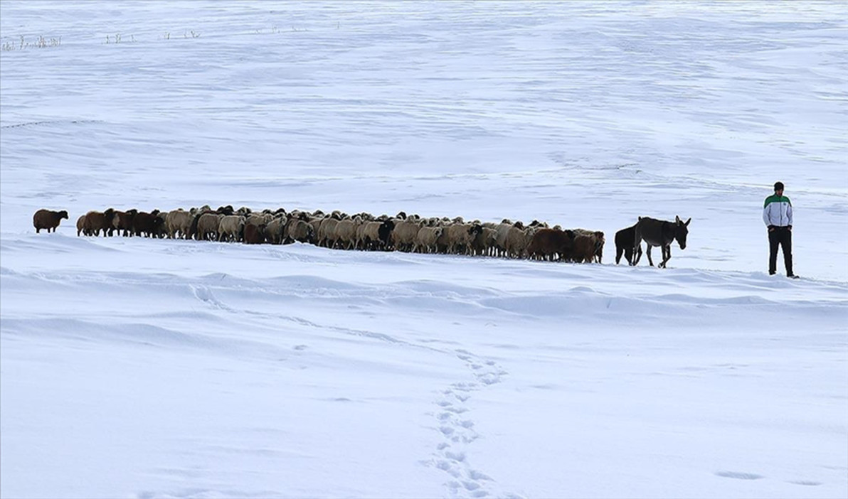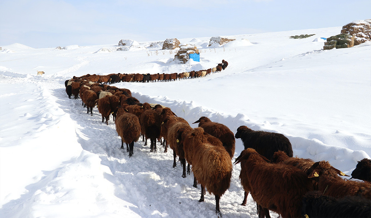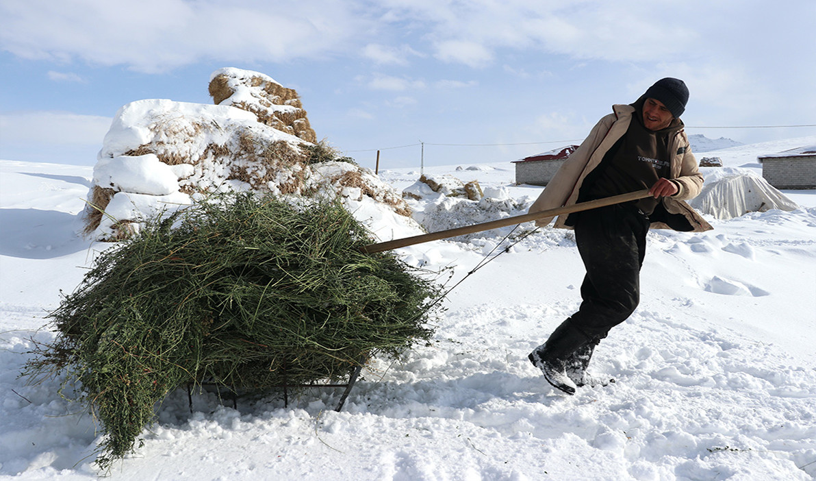 Ahırlarından çıkardıkları küçükbaş hayvanlarını beslemek için büyük bir mücadele veren köylüler, önce karı ezerek zemin hazırlıyor. Ardından kızaklarla taşıdıkları ot ve samanı karın üzerine sererek hayvanlarını doyurmaya çalışıyor. Besici Habip Altan, “Bu sene kış çok sert. Kalın elbiseler giyerek hayvanların başında nöbet tutuyoruz. Kar eriyene kadar bu çile sürecek ama işimizi severek yapıyoruz” dedi.