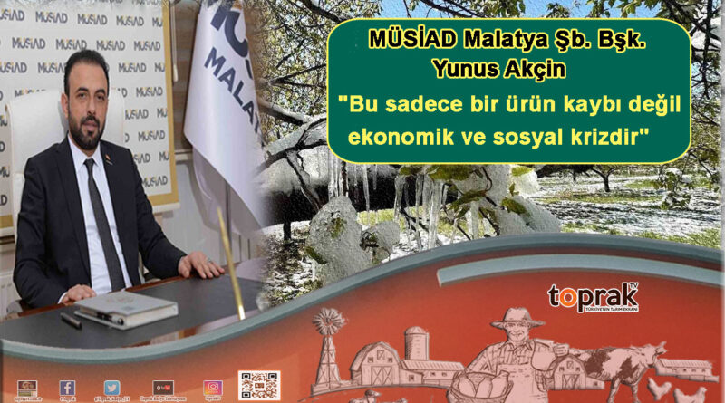 MÜSİAD Malatya Şube Başkanı Yunus Akçin, “Ortaya çıkan tablo sadece bir tarımsal ürün kaybı değil, şehrin tamamını ilgilendiren bir ekonomik ve sosyal krizdir” ifadesine yer verirken krizin yönetiminde yalnızca üretici değil, sektörün tüm bileşenlerinin korunması gerektiğini vurguladı.