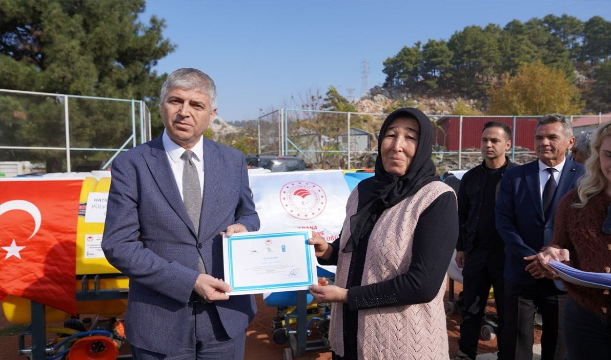 Programın sonunda, yüzde 70 hibeli ilaçlama makinesi almaya hak kazanan üreticilere teslim belgeleri Kaymakam Kurdu ve Bayazıt tarafından verildi. Kalan 93 ilaçlama makinesinin ise yıl sonuna kadar diğer ilçelerdeki üreticilere dağıtılması planlanıyor.