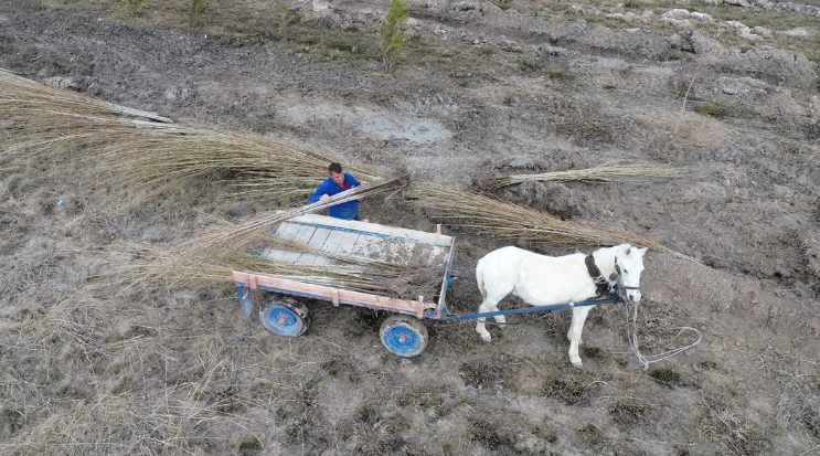At arabaları fidan taşıyor, Tuz Gölü ağaçlandırılıyor…