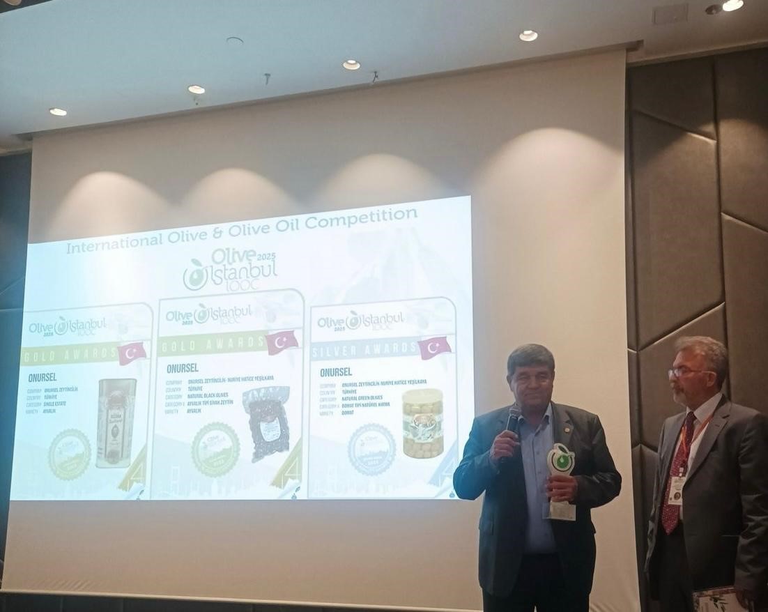 Uluslararası zeytincilik sektörünün önemli isimlerinin jüri üyeliklerini üstlendiği yarışmanın ardından yapılan değerlendirmelerde; Ayvalık’ın Altınova Mahallesi’nden dünyaya açılan Onursel Zeytincilik’in ürettiği, Ayvalık çeşidi zeytinden elde edilen natürel zeytinyağı ile natürel siyah zeytin ve domat tipi yeşil zeytine üç ayrı madalya kazanmasıyla ilgili açıklamalarda bulunan firmanın kurucusu Hüseyin Bozkurt, “Bugün; kurduğum ve kızım Hatice Bozkurt Yeşilkaya’ya devrettiğim firmamızın gurur gecesi oldu. Uluslararası Olive 2025 zeytin ve zeytinyağı yarışmasında; Ayvalık çeşidi zeytinyağı ve siyah zeytinimiz altın madalyaya, domat yeşil zeytinde gümmüş madalyaya layık görüldü. Bu başarıda emeği gecen başta eşim olmak üzere firmamızda çalışan personelimize ve destek veren herkese teşekkür ederim” dedi.