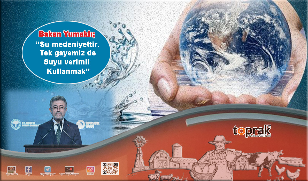 Tarım ve Orman Bakanı İbrahim Yumaklı, “Suyu sadece bir kaynak olarak görmedik. Su medeniyettir dedik ve tek gayemiz de suyu verimli kullanmak oldu. Hep söyledik bir kez daha tekrar edelim. Su bize miras değil, çocuklarımızdan emanettir.” dedi.