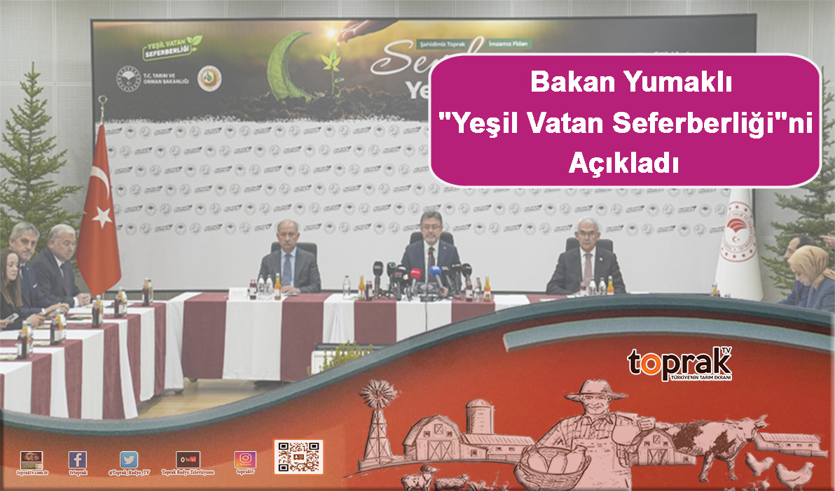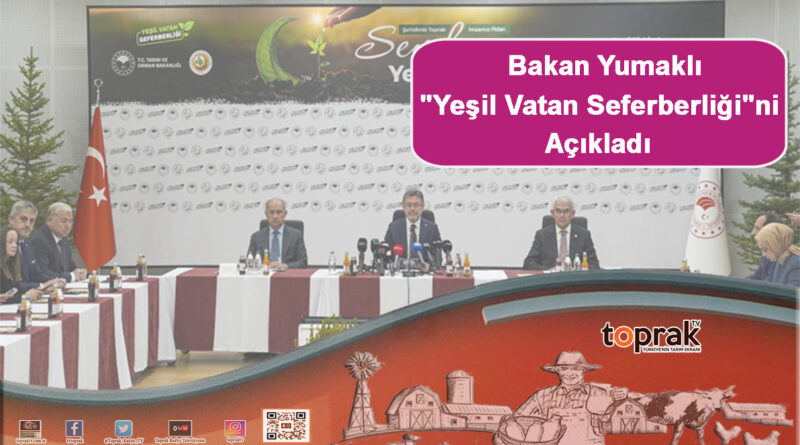 Tarım ve Orman Bakanı İbrahim Yumaklı, ülke sathında büyük bir ağaçlandırma hamlesi olan “Yeşil Vatan Seferberliği”ni duyurdu. Basın toplantısında konuşan Yumaklı, 1 yıl içinde 550 milyon fidan ve tohumu toprakla buluşturmayı hedeflediklerini belirterek, “11 Kasım’da, 81 ilde 922 ilçede fidan dikim alanlarında, 7’den 77’ye bütün vatandaşlarımızla birlikte fidan dikeceğiz” dedi.