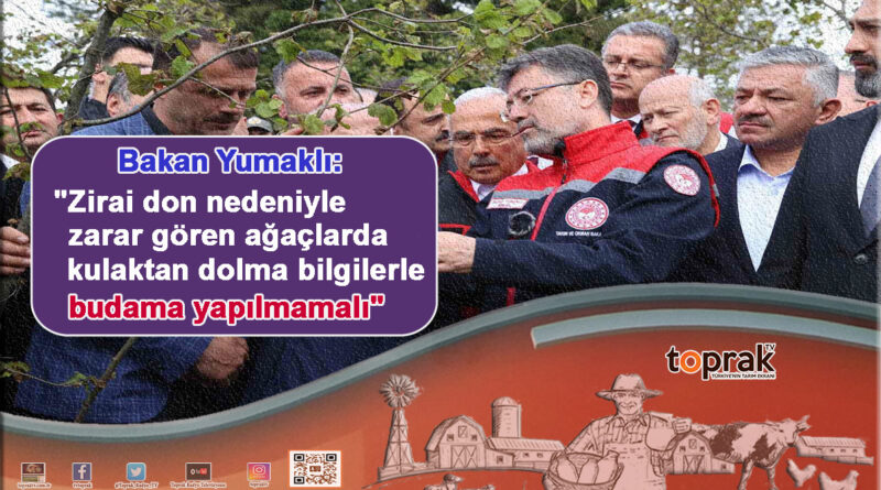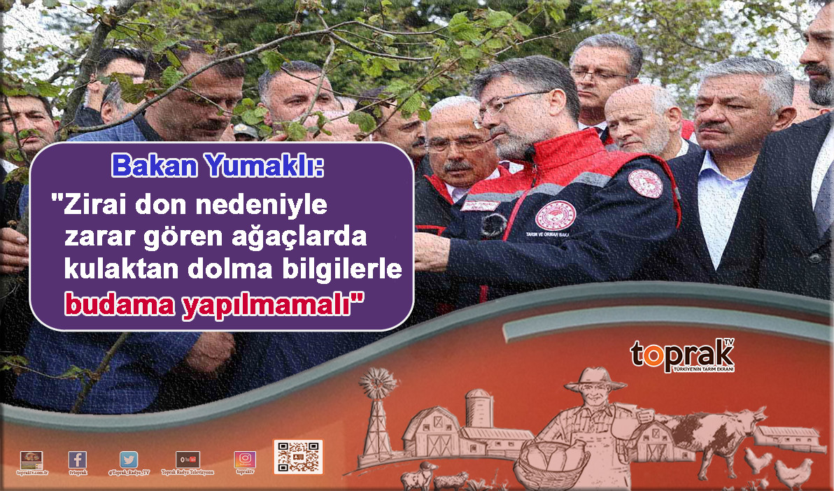 Tarım ve Orman Bakanı İbrahim Yumaklı, nisan ayında etkili olan kar yağışı sonrası etkili olan zirai don nedeniyle 34 ilde toplam 16 farklı üründe ciddi zararlar olduğunu söyledi. Bakan Yumaklı, “Önümüzdeki yıl bu ağaçların tekrar verime geçebilmesi için yapılması gereken şeyler var. Bu nedenle, bu süreçlerin kulaktan dolma bilgilerle değil, bakanlığımızın, belirttiği şekilde yapılmasını özellikle istirham ediyoruz. ‘Artık bundan bir şey olmaz’ deyip aslında yapılabilecek çok şey varken, bu ağaçların gelişigüzel budanması, kesilmesi gibi uygulamalardan özellikle uzak durulmasını istiyoruz” dedi.