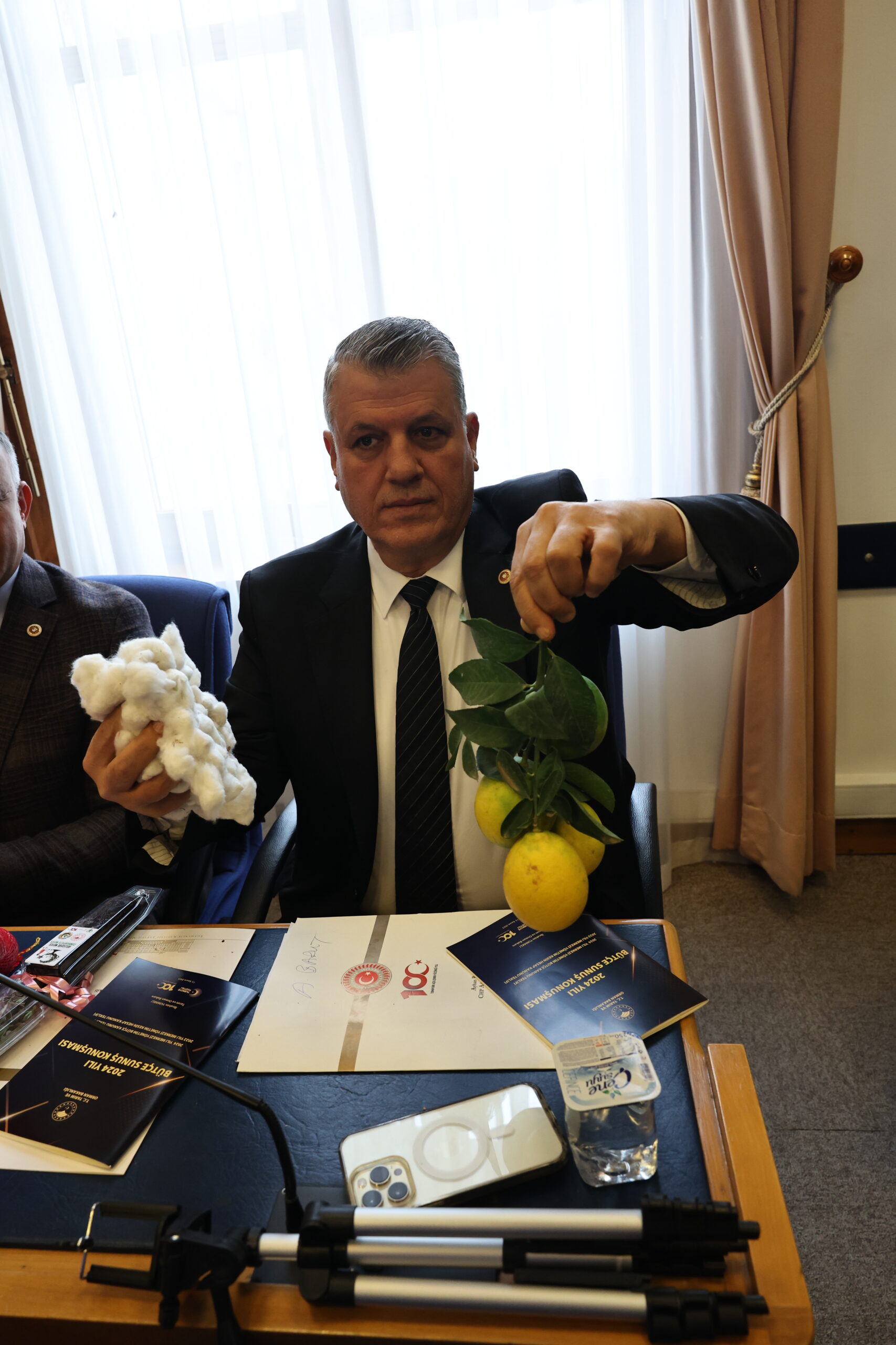 ANKARA- Cumhuriyet Halk Partisi (CHP) Adana Milletvekili, TBMM Tarım, Orman ve Köyişleri Komisyonu Üyesi Ayhan Barut, Meclis’te süren bütçe görüşmelerine limon ve pamukla damga vurdu. Tarım Bakanı Yumaklı’nın gözünün önüne limon ve pamuk koyan Barut, elindeki limonu sıkıp Bakana tepki gösterirken, “Çiftçinin ümüğünü sıktınız” dedi. Tarımda atama bekleyen meslek gruplarının sorunlarına da dikkat çeken Barut, kamuya yeterli sayıda atama yapılmasını talep ederken süreçle ilgili net takvim açıklanmasını da istedi.