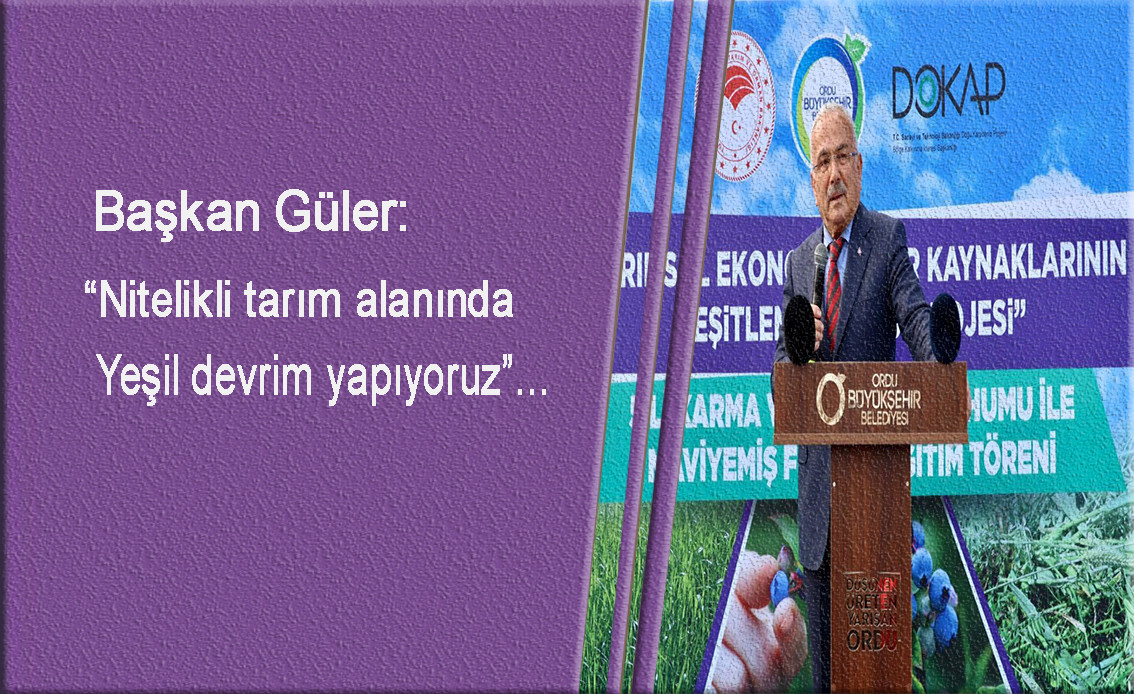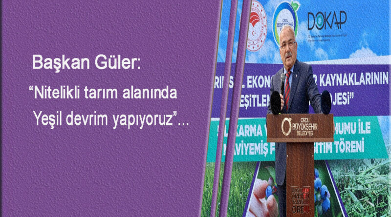 Ordu Büyükşehir Belediye Başkanı Dr. Mehmet Hilmi Güler, “Büyükşehir Belediyesi olarak tarımda bir devrim yapıyoruz, bu devrimin adı yeşil devrimdir. Yeşil ekonomi ile ülkemiz ve şehrimizi daha da ileriye gitmiş olacak. Bu yeşil ekonomi sayesinde doğduğu yerde doyan insanlar olacağız” dedi.