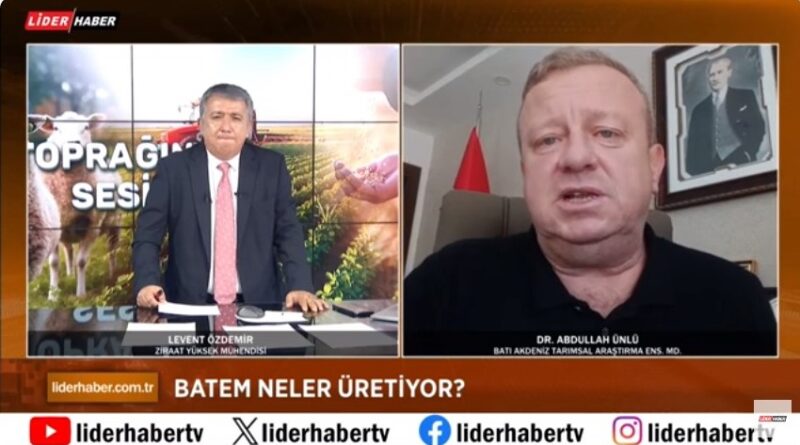 Her hafta cuma günü saat 19.30 da Lider Haber TV’de yayınlanan Toprağın Sesi programının bu hafta konuğu, Batı Akdeniz Tarımsal Araştırma Enstitüsü Müdürü Abdullah Ünlü Oldu. Ziraat Yüksek Mühendisi Levent Özdemir’in hazırlayıp sunduğu programda, Tarımsal Araştırmalar ve Politikalar Genel Müdürlüğü (TAGEM) bünyesinde yer alan 49 Araştırma Enstitüsünden Bölgesel Araştırma Enstitüsü bölümünde olan BATEM’in faaliyetleri konuşuldu.