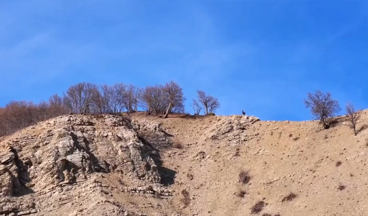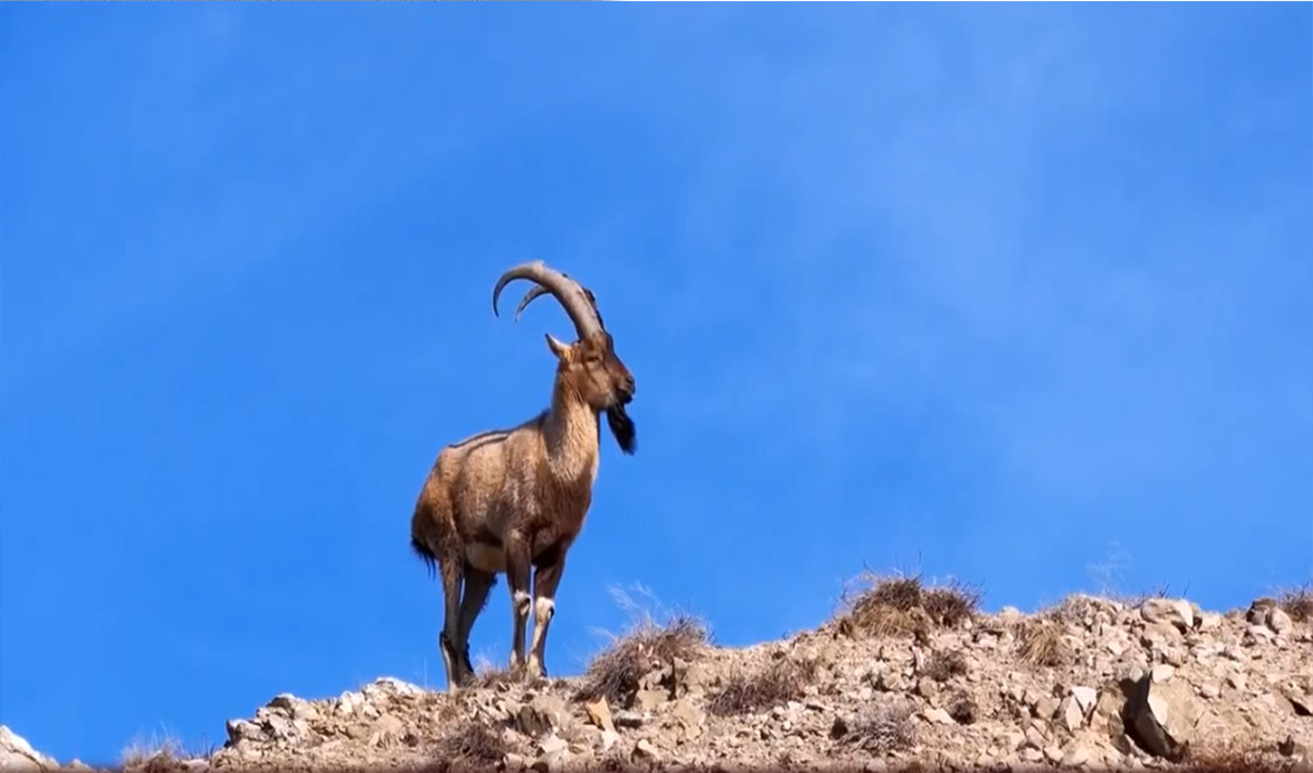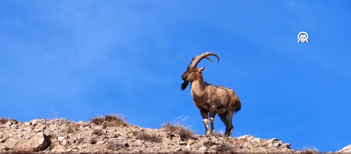 Bölgede bir teke yaban keçisi dağda tek başına gezerken kameralara yansıdı.