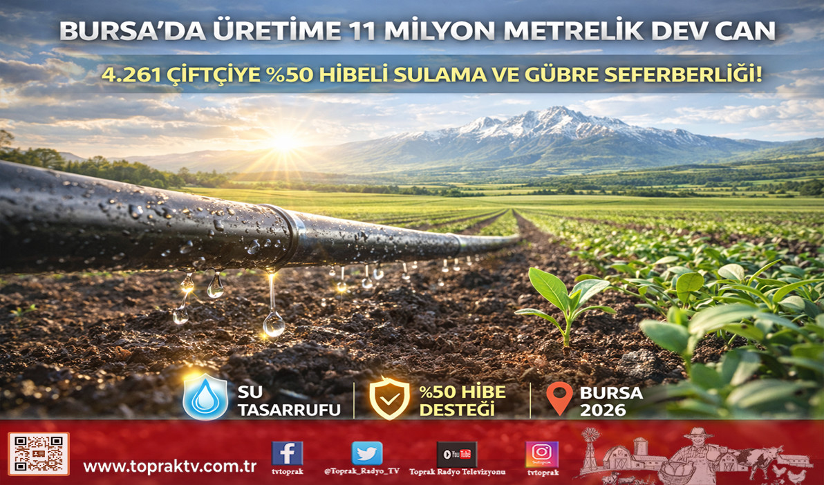 >Bursa’da hayata geçirilen bu proje, “Su Hayattır” vizyonumuzun tarladaki en güçlü yansımasıdır. Geri dönüşümden elde edilen sulama sistemlerinin toprakla buluşması, hem doğayı koruyan hem de çiftçinin cebini düşünen uzman bir yaklaşımdır. Toprak TV olarak, her damla suyun hesabını yapan ve toprağı bilgiyle işleyen tüm üreticilerimizin sarsılmaz bir inançla yanındayız.