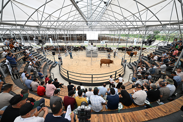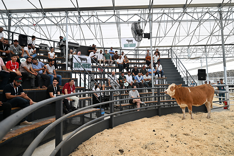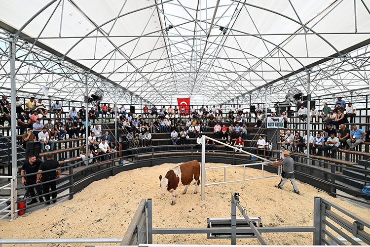 Burada oluşturulan alanda, işletme tarafından “hastalıktan ari” sertifikalı 200 düve, anaç angus, buzağı ve damızlık tosun satışa sunuldu.