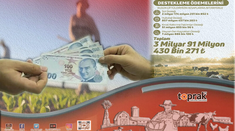 Çiftçilere yaklaşık 3,1 milyar lira destek ödemesi bugün yapılacak