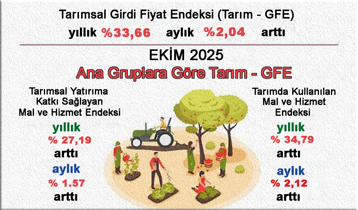 Türkiye İstatistik Kurumu (TÜİK), tarım sektörünün merakla beklediği Ekim ayı Tarımsal Girdi Fiyat Endeksi (Tarım-GFE) verilerini açıkladı. Rakamlar, üreticinin maliyet yükünün artmaya devam ettiğini gösteriyor. Endeks, Ekim ayında bir önceki aya göre yüzde 2,04, geçen yılın aynı ayına göre ise yüzde 33,66 artış kaydetti.