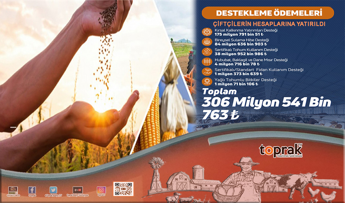 Ayrıca Hububat, Baklagil ve Dane Mısır desteği için 4,7 milyon TL, Yağlı Tohumlu Bitkiler için 1 milyon TL ve Sertifikalı/Standart Fidan Kullanımı için 1,3 milyon TL ödeme yapıldı.