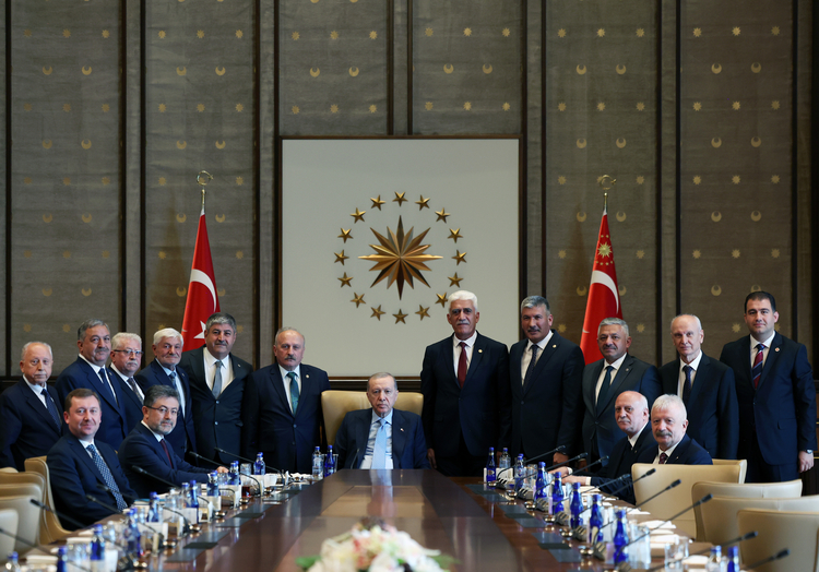 Cumhurbaşkanı Erdoğan, 14 Mayıs Dünya Çiftçiler Günü dolayısıyla Tarım ve Orman Bakanı İbrahim Yumaklı, Türkiye Ziraat Odaları Birliği (TZOB) Genel Başkanı Şemsi Bayraktar ve üyelerinin de yer aldığı heyetle Cumhurbaşkanlığı Külliyesi’nde bir araya geldi.