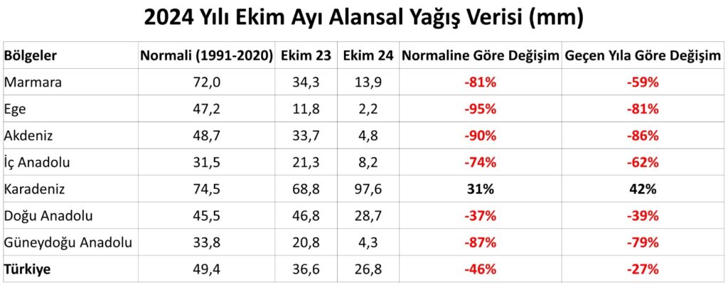 Veriler, Türkiye genelinde son 6 yılın, Ege’de son 40 yılın, Marmara Bölgesi’nde ise son 23 yılın en kötü yağış sezonunu geçirdiğimizi gösteriyor. Yağışlar hem günlük yaşam hem de tarımsal üretim açısından büyük öneme sahip. Dünyadaki toplam suyun sadece %2,5’i tatlı sudan oluşuyor ve bu tatlı suyun %73’ü tarımsal üretimde kullanılıyor. Türkiye’de ise tüketilebilir yerüstü ve yeraltı su potansiyeli yılda ortalama toplam 112 milyar m³ olup, bunun 57 milyar m³’ü kullanılıyor ve bu miktarın %77’si tarımsal üretimde.