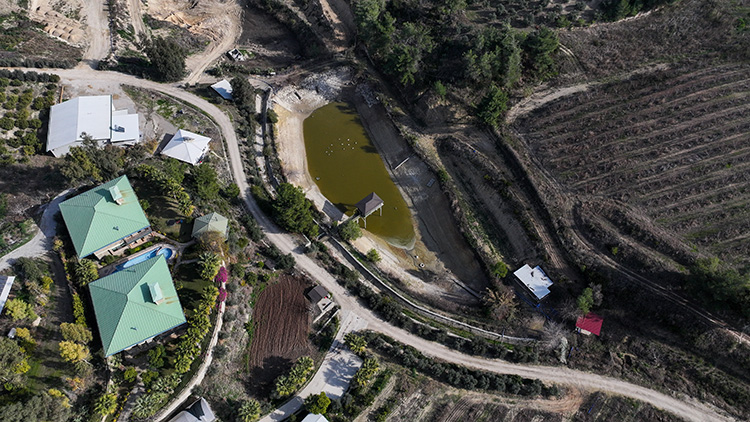 Çiftlik içinde toplam 240 bin ton kapasiteye sahip iki göletten bahçelerin sulamasını yapan Acembekiroğlu, beslediği hayvanların gübresini de kullanarak kimyasal gübre tüketimini yarı yarıya azalttı.
