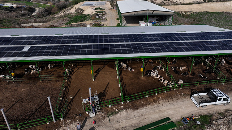 Adana‘da günde ortalama 23 ton süt üretilen çiftlikte elektrik, güneş enerji panellerinden elde edilirken su ihtiyacı ise yağmur suyunun biriktirildiği göletlerden karşılanıyor.