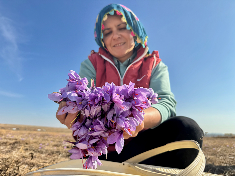 Eskişehir’de dünyanın en pahalı baharatları arasında ilk sıralara gösterilen safran bitkisinin hasadı gerçekleştirildi. Tepebaşı ilçesinde bulunan 112 dekarlık tarım arazisine ekilmiş olan safranlar işçilerce sepetlere toplanıyor. Daha sonra yine el yordamı ile bitkinin en önemli kısmı olan dişi organları stigma kısmı ayıklanıyor. Oldukça zahmetli ve ince işçiliği olan hasatta 150 bin çiçekten 1 kilogram safran elde edilirken sırasıyla, çiçekler koparılıyor, ayırılıyor, kurutuluyor ve pazara arz ediliyor. Safran, kanserden kalp hastalıklarına, diyabetten ruhsal durumun iyileştirilmesine kadar birçok sağlık faydasının olduğu biliniyor. Dünyada 500 ton üretiliyor safran üretilirken bunun 80 kilogramı Türkiye’de üretiliyor. Safrandan yapılan çay, bal, deodorant, krem gibi birçok ürün hasat etkinliğinde tanıtıldı.