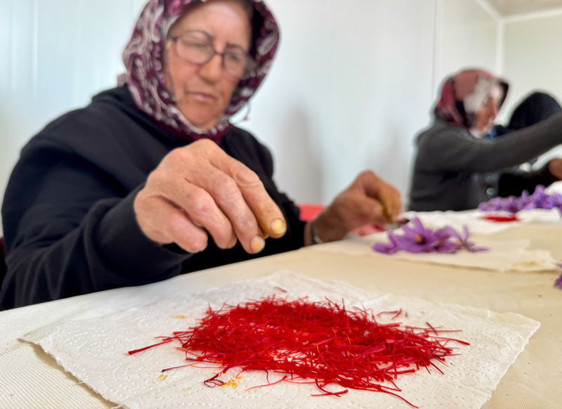 Program sonunda Vali Hüseyin Aksoy, safran bitkisini toplayıp ardından da çiçeğin stigma kısmını ayıkladı.
