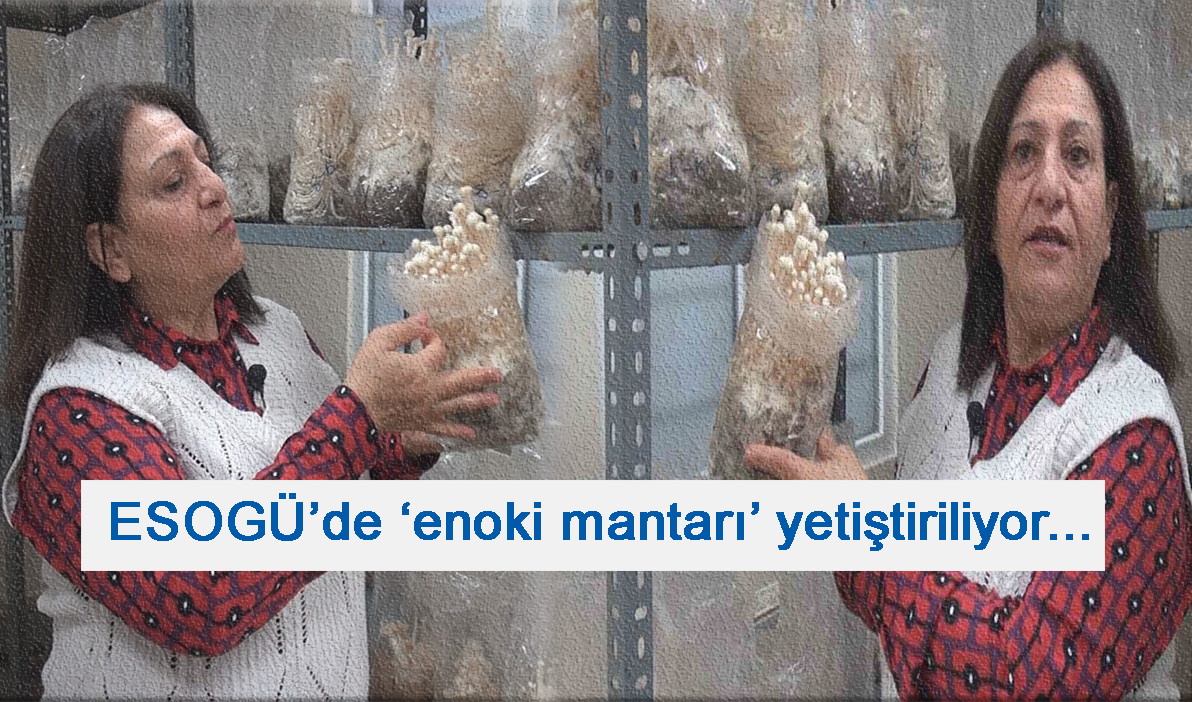 ESOGÜ Ziraat Fakültesi bünyesinde bulunan mantarhanede çeşitli mantar türlerinin yetiştiriciliği konusunda araştırmalar yapılıyor. Bir yüksek lisans tez çalışması kapsamında enoki mantarı üzerine yürütülen araştırmada farklı yetiştirme ortamları denenerek en iyi verim ve kalitenin elde edileceği ortam belirlenmeye çalışılıyor. Yetiştirme süreci farklı aşamalardan oluşuyor. İlk olarak Atatürk Bahçe Kültürleri Merkez Araştırma Enstitüsünden alınmış olan tohumluk misaller pamuk, talaş, kepek, gıda atıkları gibi materyaller kullanılarak farklı formülasyonlarda substratlar oluşturuluyor. Substratlar zararlı mikroorganizmalardan arındırılmak üzere sterilizasyon işlemine maruz bırakılıyor, ardından misel ekimi yapılıyor. 20- 25 günlük kuluçka sürecinin ardından yaklaşık 8-10 gün 7-8 derece sıcaklıkta bekledikten sonra üretim odasına alınıyor. Hasat dönemi üç haftayı bulabiliyor; birer kilogramlık torbalardan 200-250 gram verim alınabiliyor.