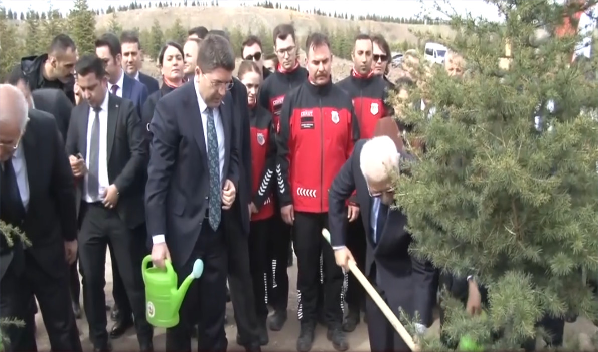 Konuşmaların ardından Bakan Tunç, törene katılan şehit Cumhuriyet Savcısı Kiraz’ın babası Hakkı Kiraz ile fidan dikti.