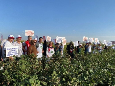 Aksoy, rejeneratif tarımla da yılda en az 2 ürün aldıklarına dikkati çekerek, şunları kaydetti: “İlimizde rejeneratif tarım dediğimiz pamukta uyguladığımız toprağı dinlendirerek işlem yapma var. Biz burada tarlada en az 2 ürün alıyoruz. Birinci ürün pamuktan önce mercimek, arpa veya soya ikinci ürün olarak bunları ektiriyoruz. Hem toprak dinlenmiş oluyor hem de bu baklagil bitkileri olduğu için toprağın azot olarak ve organik maddece zenginleşiyor. Ayrıca buradaki kullanılan ilaç ve gübre azaldığı da pamuğun kalitesini artıyor. Özellikle de şu anda bu sertifikalı pamukla ilgili rejeneratif tarıma ayrı bir destek veriyoruz. Biz de ilimizde bunu şu anda uyguluyoruz. İnşallah Şanlıurfa’mızda bu tarım sistemini geliştirerek bütün üreticilerimize yaymaya çalışacağız.”