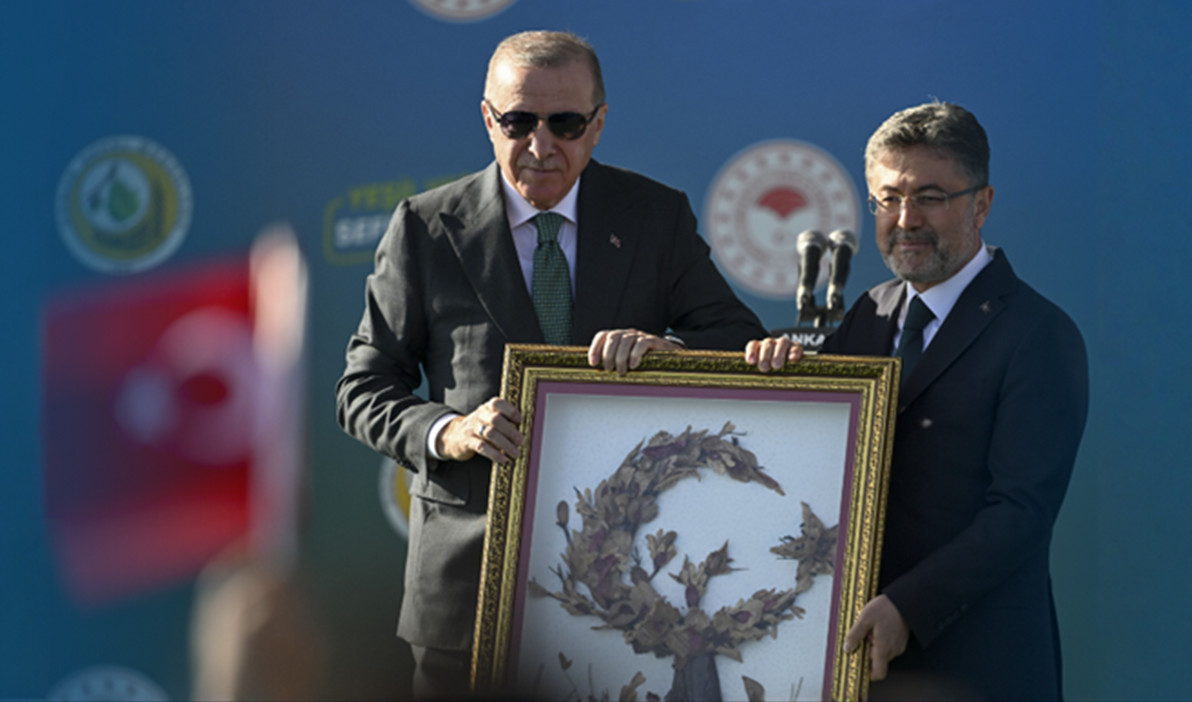 Tören, Cumhurbaşkanı Erdoğan’a Orman Genel Müdürü Bekir Karacabey ve Bakan Yumaklı tarafından ay yıldız motifli tablo takdim edilmesi ve Erdoğan’ın kendi adına dikilen ağaca can suyu vermesiyle son buldu.