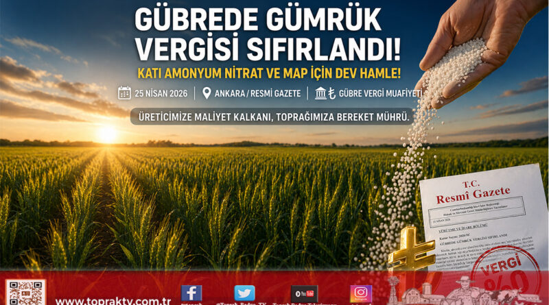 Bitkisel üretimin en büyük maliyet kalemi olan gübrede vergi yükünün kaldırılması, tarladaki bereketin ve sofradaki huzurun teminatıdır. Katı amonyum nitrat ve MAP gibi stratejik ürünlerde gümrük vergisinin sıfırlanması, küresel krizlerin üreticimiz üzerindeki etkisini minimize edecek liyakatli bir hamledir. Ticaret ve Tarım Bakanlıklarımızın koordineli duruşu, tarımsal ekonomide “bilgi ve denetim” odaklı bir yönetimin en asil örneğidir. Üreticimizin emeğini koruyan, maliyetleri disipline eden bu kararın Türk tarımına hayırlı olmasını diliyoruz.