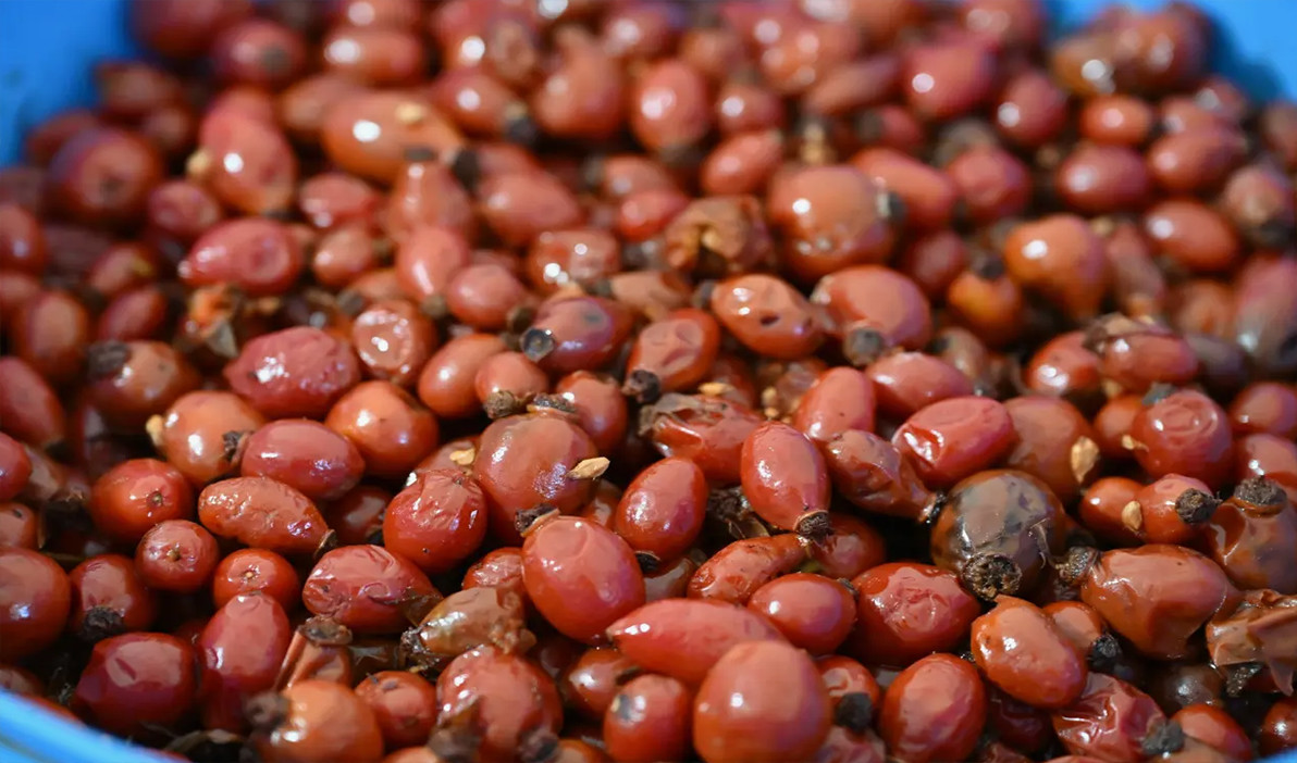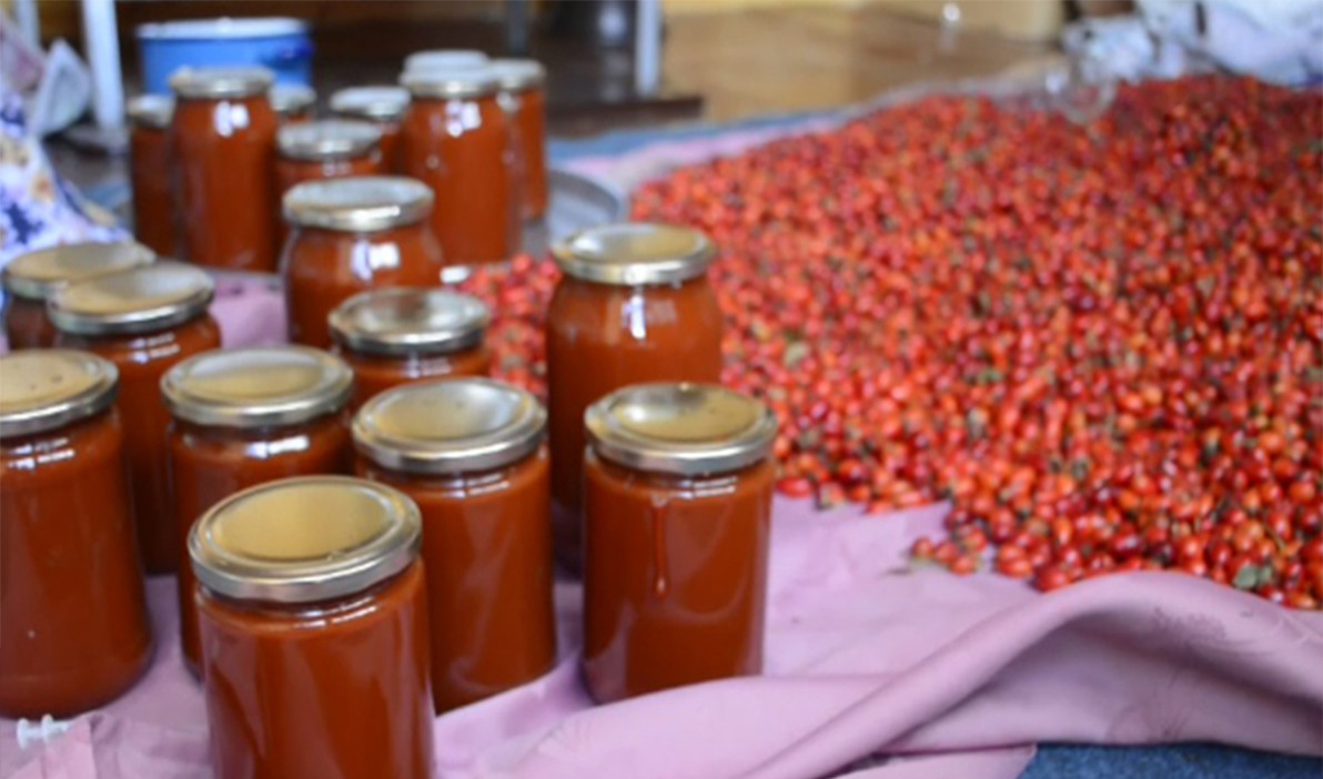 Türkiye’de yetişen 27 kuşburnu türünden 17’sine ev sahipliği yaparak adeta bir gen merkezi olan Gümüşhane‘de, “dikenli gül” olarak da bilinen kuşburnu meyvesinin sofralara uzanan zahmetli yolculuğu başladı. Doğal olarak yetişen ve 100 gramında bir kasa portakala eşdeğer C vitamini barındıran bu şifalı meyve, iki gün süren yorucu bir emeğin ardından marmelat olarak kavanozlardaki yerini alıyor.