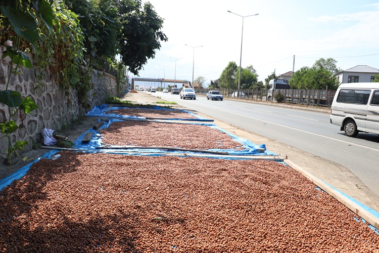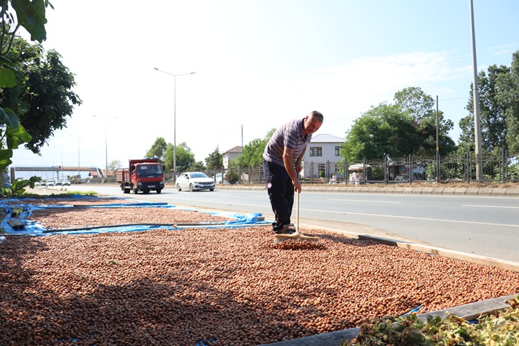 Trabzon‘da hasat sonrası çuvallarla topladıkları ürünlerini zaman geçirmeden kurutmak zorunda olan üreticiler, özellikle köylerde yağış olması ve uygun harman yerlerinin bulunmaması nedeniyle sahil şeridine iniyor. Kaldırımlara serdikleri fındıkların başında, kurdukları çadırlarda nöbet tutan üreticiler, ürünün zarar görmemesi için zaman zaman tırmık ve küreklerle havalandırma işlemi yapıyor.