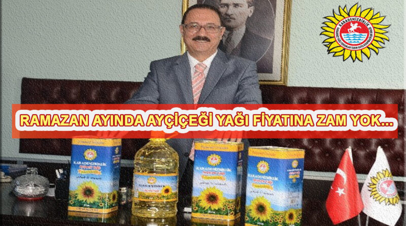 Erarslan, yönetimi kurulu olarak bugünden itibaren ramazan ayının sona ereceği 29 Mart Cumartesi gününe kadar KARADENİZBİRLİK markalı ayçiçeği yağı ürünlerine zam yapılmaması kararı aldıklarına işaret ederek, şunları kaydetti: