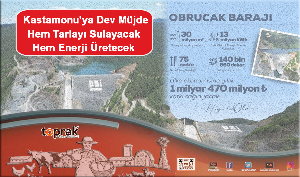 Kastamonu‘ya kurulacak Obrucak Barajı, iklim krizi ve kuraklıkla mücadele ettiğimiz bu dönemde atılmış en stratejik ve en akılcı adımlardan biridir. Bu proje, “suyun tek bir damlasını bile boşa harcamama” felsefesinin en somut örneğidir. Sadece 150 bin dekar araziye can suyu vererek on binlerce çiftçinin kaderini değiştirmekle kalmayacak, aynı zamanda üreteceği temiz enerji ile de ülke ekonomisine katkı sağlayacaktır. Bu, bir taşla iki kuş vurmak değil, bir yatırımla tarlayı, şehri ve geleceği aynı anda kalkındırmaktır. Toprak TV olarak, bu vizyoner projeyi ülkemize kazandıran Tarım ve Orman Bakanlığı’nı ve Devlet Su İşleri Genel Müdürlüğü‘nü yürekten kutluyoruz.