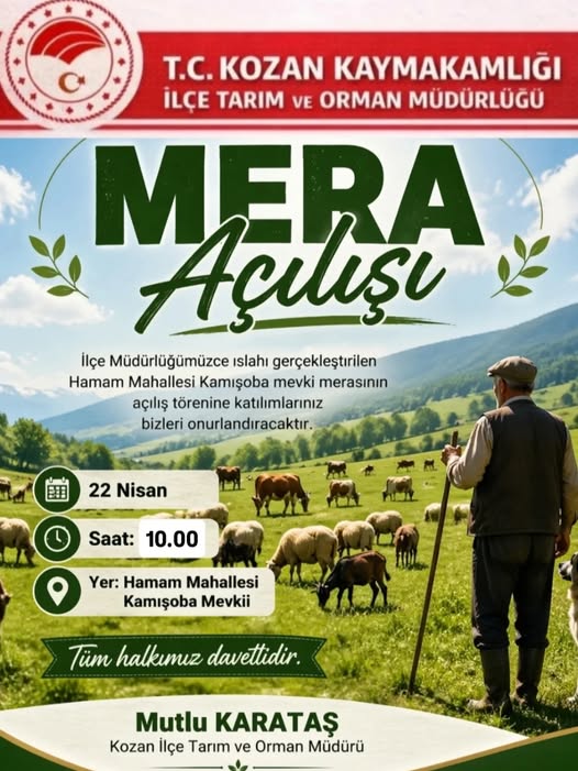 Kozan İlçe Tarım ve Orman Müdürü Mutlu Karataş, projenin tamamlanmasıyla birlikte bölgedeki üreticilerin daha kaliteli ve yüksek besin değerli meralara kavuşacağını belirtti. Islah çalışmaları sayesinde toprak yapısının korunduğunu ve bitkisel çeşitliliğin artırıldığını vurgulayan Karataş, tüm bölge halkını bu asil açılışa davet etti.