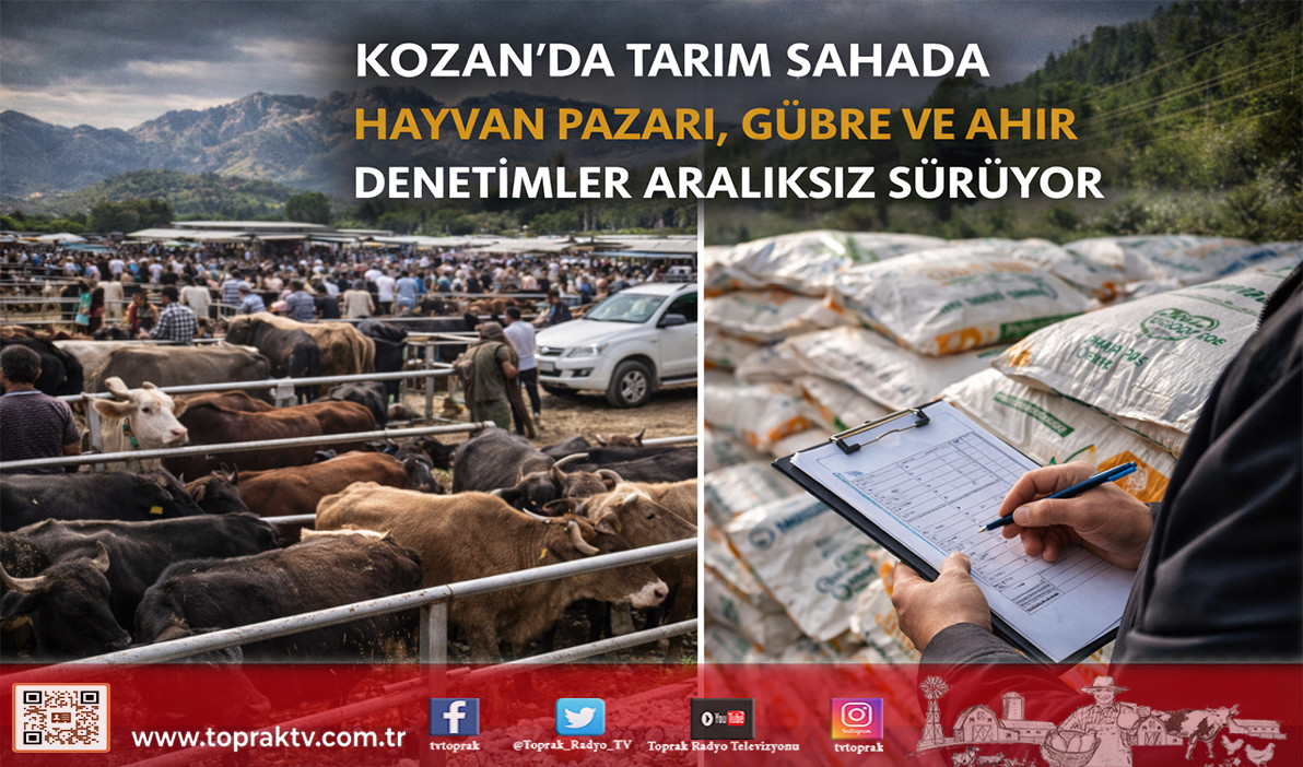 Adana‘nın tarımsal üretim merkezlerinden Kozan‘da, İlçe Tarım ve Orman Müdürlüğü ekipleri eş zamanlı üç koldan sahaya indi. Hayvan pazarındaki sıkı denetimlerden gübre bayilerinin kontrolüne, besicilerin kapasite tespitine kadar her alanda “Güvenli Gıda ve Sürdürülebilir Üretim” için mesai harcanıyor.