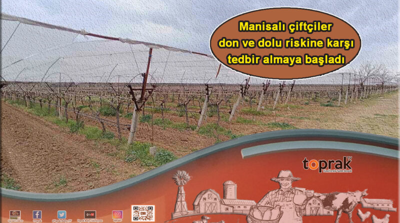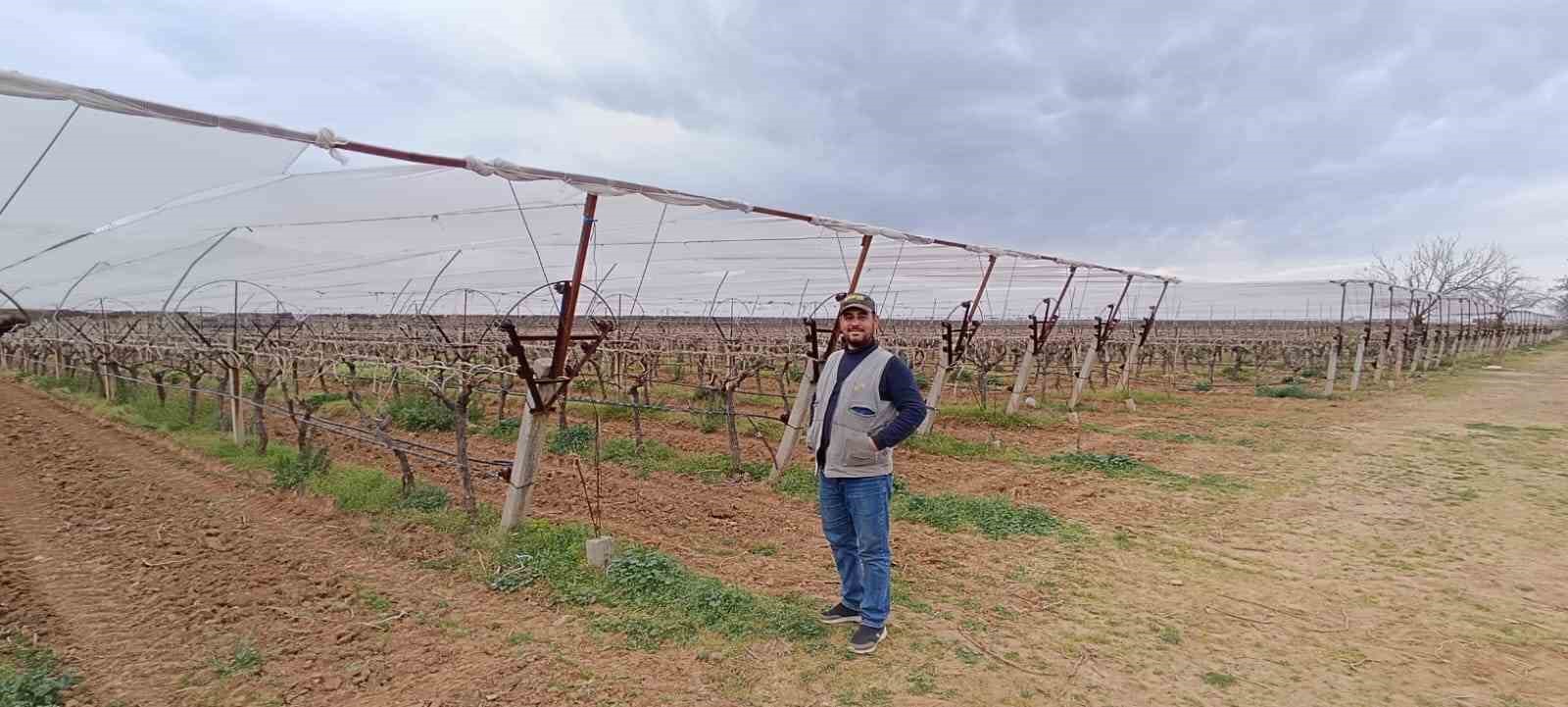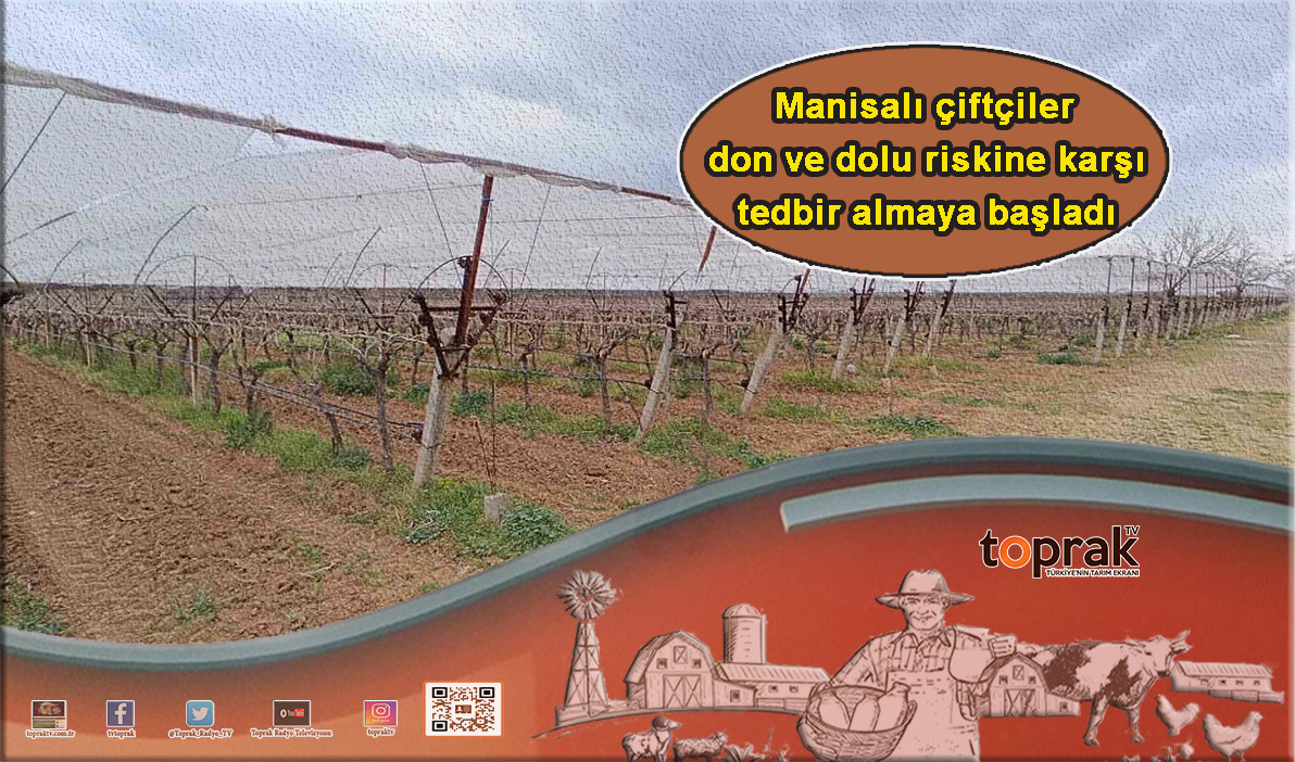 Manisa’nın Sarıgöl ilçesinin dünyaca ünlü Çekirdeksiz Sultaniye üzüm bağlarında yaşanabilecek bir dolu olayına karşı üreticiler üzüm bağlarının üzerlerini doku tülü ile örtülerini örtmeye başladı. Sarıgöl Ziraat Odası Başkanı Ali İhsan Ülgen de üreticileri özellikle 19 Mart ve sonrası için hem dolu hem de don olaylarına karşı uyararak tedbirlerini almalarını istedi.