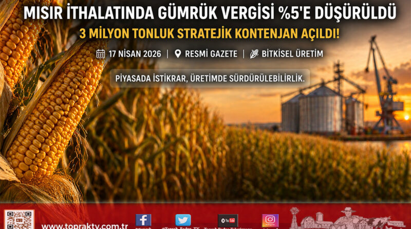 Resmî Gazete’nin 17 Nisan 2026 tarihli sayısında yayımlanan Cumhurbaşkanı Kararı ile mısır ithalatında devrim niteliğinde bir düzenlemeye gidildi. Yerli üreticiyi ve arz güvenliğini koruma amacı taşıyan karara göre, mısır ithalatında uygulanan gümrük vergisi %130 seviyesinden %5’e çekilerek 3 milyon tonluk tarife kontenjanı tanımlandı.