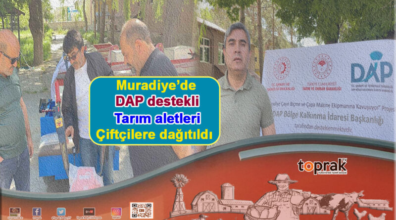 Van’ın Muradiye Kaymakamlığı, Muradiye İlçe Tarım ve Orman Müdürlüğü ile Doğu Anadolu Projesi (DAP) Bölge Kalkınma İdaresi Başkanlığı desteğiyle ilçedeki çiftçilere çeşitli tarım aletleri dağıtıldı.