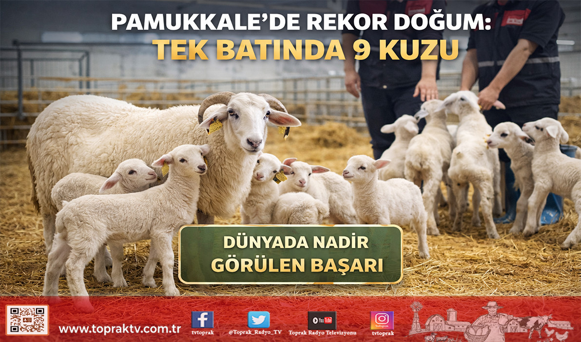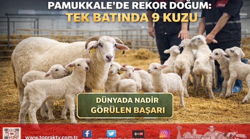 Denizli’nin Pamukkale ilçesinde hayvansal üretim faaliyetlerini sürdüren bir işletmede, dünyada nadir görülen bir olay yaşandı. Pınarkent Mahallesi’nde faaliyet gösteren küçükbaş hayvan çiftliğinde, “Çeşme Sakızı” cinsi bir koyun tek batında tam 9 kuzu dünyaya getirdi. Tarım teşkilatı, bu sıra dışı başarıya imza atan işletmeyi ziyaret ederek incelemelerde bulundu.