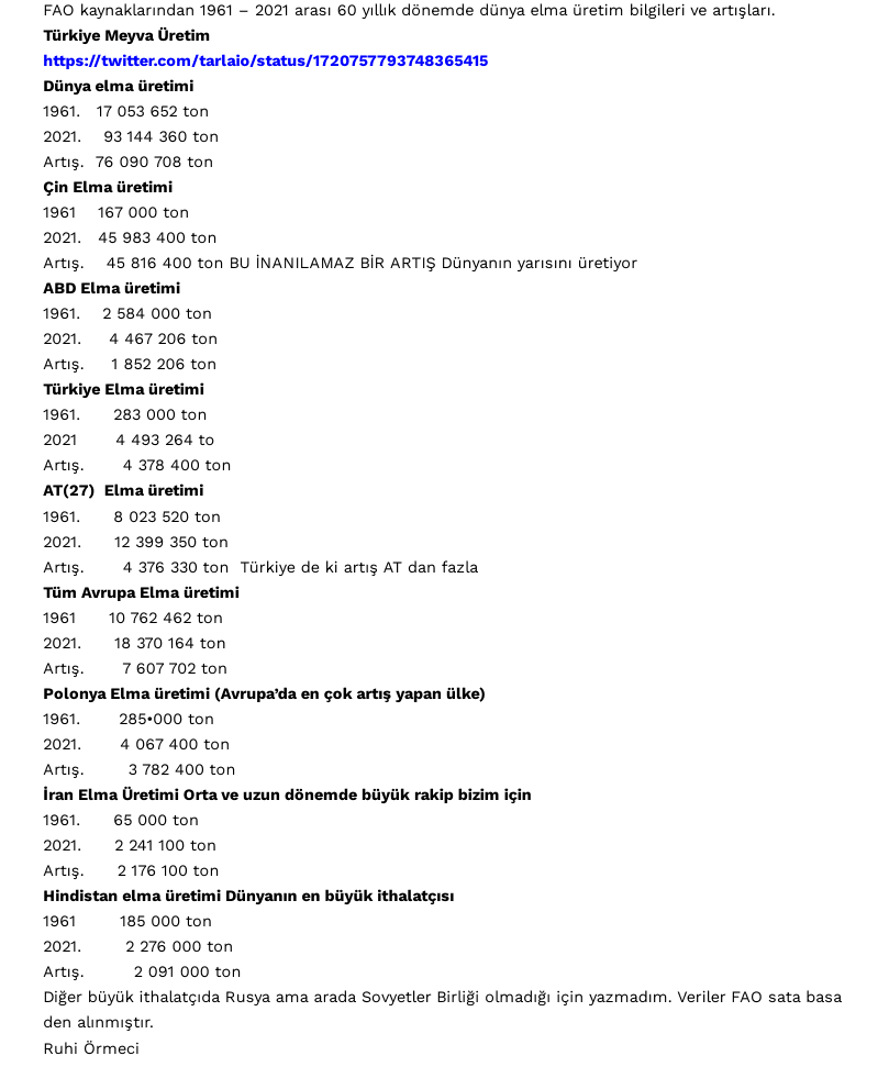 Ruhi Ömerci; Dünya’da ve Türkiye’de Elma Üretimi